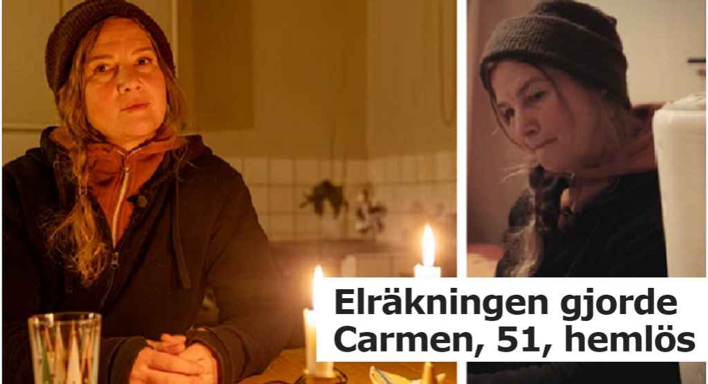 كارمن تعيش في منزل صغير متكون من غرفة و إيجاره 3.750 آلاف كرون في بلدية كرامفوش شمال السويد. ولم تكن تتخيل إطلاقاً أنها ستواجه مشكلة في عدم القدرة على دفع الفواتير الشهرية لإيجار منخفض مثل هذا الإيجار.