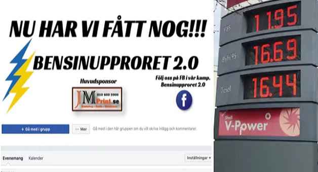 مجموعة فيس بوك اسمها Bensinupproret 2.0 يمكن متابعتها من هنا ، ، تدعوا إلى مظاهرات شاملة في جميع المدن السويدية ، لخفض أسعار الوقود في السويد وجعلها متساوية مع دول أوروبا أو اقل ..