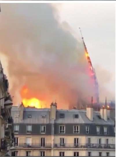 قبل قليل :احتراق كنيسة كاتدرائية نوتردام (السيدة العذراء) في باريس وسقوط السقف والبرج التاريخي