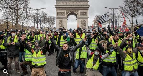 وتميز متظاهرو فرنسا بارتداء سترات صفراء، وأجبروا الرئيس الفرنسي إيمانويل ماكرون على التراجع عن فرض زيادات على أسعار المحروقات. وانتقلت عدوى التظاهرات لعدة بلدان تشهد إجراءات اقتصادية قاسية.