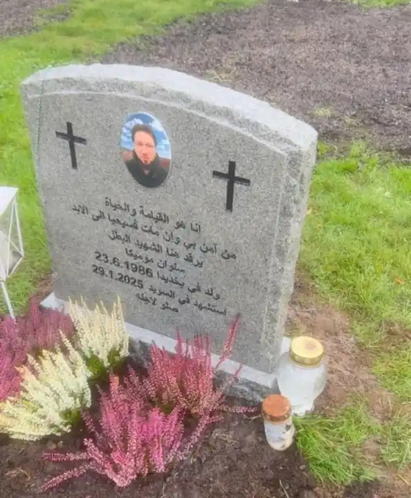 والد موميكا قال بمرارة: لا شاهد… لا اسم… فقط لافتة خضراء تطالب ذوي المتوفى بالتواصل مع إدارة المقبرة. «السويد لم تستطع حماية ابني وهو حي… والآن يبدو أنها عاجزة حتى عن حمايته وهو ميت».