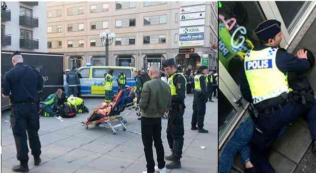 وفقاً لشهود عيان فأن هناك رجل عاري في العشرينيات من عمره مصاب بجروح متفرقة في جسده خرج من مبنى سكني يسكنه عائلات متعددة ، وتم مطاردته من عدة أشخاص وحسب الشرطة، فقد وقع الحادث في شارع JH Dahlsgatan ، وأضاف التلفزيون السويدي أن أحد المصابين هو ضابط بالشرطة حيث أصيب بجروح دامية.