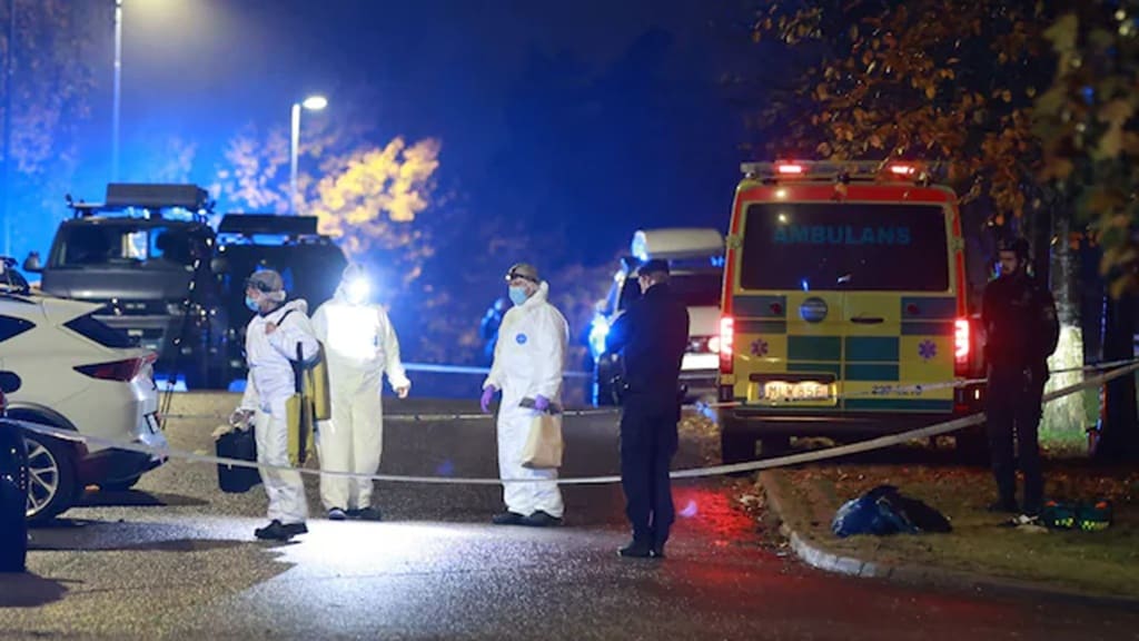 ووفقا لبيان الشرطة السويدية، تم استدعاء عدة دوريات عندما ورد البلاغ عن حادثة إطلاق النار المزدوجة في منطقة فورنهويجدن في سويدرتيلجي عند الساعة 21:23. وأكدت الشرطة وفاة الشاب البالغ من العمر 18 عامًا، وتم إبلاغ عائلته بالخبر. أما الضحية الثانية، وهو رجل في العشرين من عمره، فيتلقى العلاج في المستشفى، وأوضحت الشرطة أن إصاباته ليست مهددة لحياته.