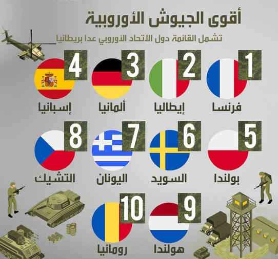 ترتيب الدول الأوروبية العشرة الأقوى في أوروبا عسكريا