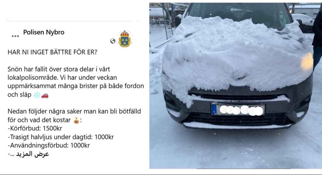 هذه الحادثة لم تكن استثناءً. فمع موجة تساقط الثلوج التي غطّت مناطق واسعة من البلاد خلال الأيام الأخيرة، عادت الشرطة السويدية لتدق ناقوس الخطر. وأكدت أنها لاحظت خلال أسبوع واحد فقط عددًا كبيرًا من المركبات التي لا تستوفي شروط القيادة الآمنة في فصل الشتاء، سواء بسبب أعطال فنية أو إهمال في تجهيز السيارة.