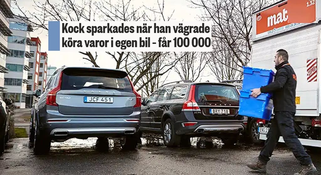 أصدرت محكمة العمل السويدية حكماً بتعويض عامل يعمل في مطعم في نادي جولف مبلغ 100 ألف كرون سويدي، وذلك بعد قيام إدارة المطعم بطرده من العمل ووقف راتبه بعد أن رفض “العامل” قيادة سيارته الخاصة لنقل بضائع تخص المطعم. ما بدأ كخلاف بين العامل وإدارة المطعم وانتهى بفصل العامل من وظيفته، وبدأ الخلاف عندما طُلب من الطاهي استخدام سيارته الخاصة لنقل بضائع للمطعم. رغم لم يكن هناك أي اتفاق مسبق يسمح بذلك أو ينص على تعويض مالي مقابل استخدام السيارة، وهو ما جعل الموظف يرفض الطلب بشكل قانوني ومهني.