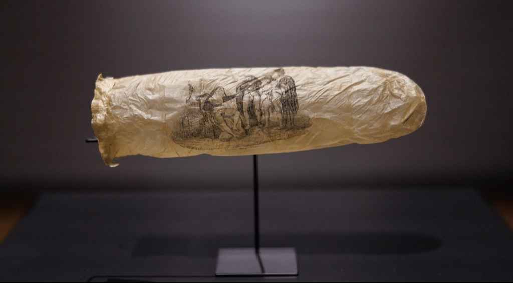 كشف متحف ريكسميوزيم الشهير في العاصمة الهولندية أمستردام عن أحدث مقتنياته الجريئة والغريبة: واقٍ ذكري يعود إلى عام 1830، مصنوع على الأرجح من زائدة خروف، ويبلغ طوله 20 سنتيمترًا!  الملفت في القطعة ليس فقط عمرها أو خامتها، بل ما هو مطبوع عليها: رسم محفور لراهبة شبه تقف بجانب ثلاثة رجال في وضعية   !
