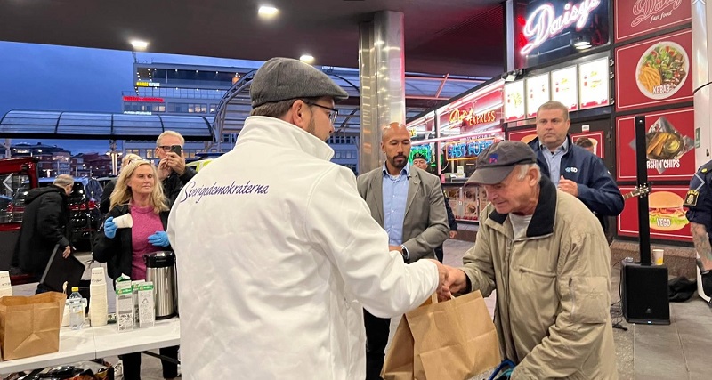 الحملات الانتخابية في السويد تتضمن حقائب غذائية ! .. هذا ما قام به جيمي أوكسون بنفسه حيث قام بالمشاركة بتوزيع ” أكياس الغذاء” على السويديين “المحتاجين” بوسط العاصمة ستوكهولم مساء يوم الأحد -شاهد الفيديو بالأسفل.