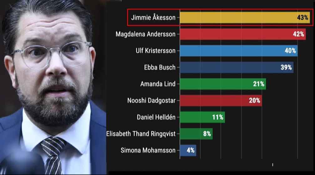 في تحوّل لافت داخل المشهد السياسي السويدي، نجح زعيم حزب ديمقراطيي السويد جيمي أوكسون (Jimmie Åkesson) في تصدّر قائمة أكثر قادة الأحزاب حظًا بثقة الناخبين، متقدمًا للمرة الأولى على زعيمة الحزب الاشتراكي الديمقراطي ورئيسة الوزراء السابقة ماغدالينا أندرسون.