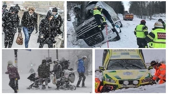 وشهدت مناطق جنوب السويد العديد من الحوادث المرورية، ما أدى الى خلق حالة من الفوضى المرورية وطوابير انتظار طويلة.